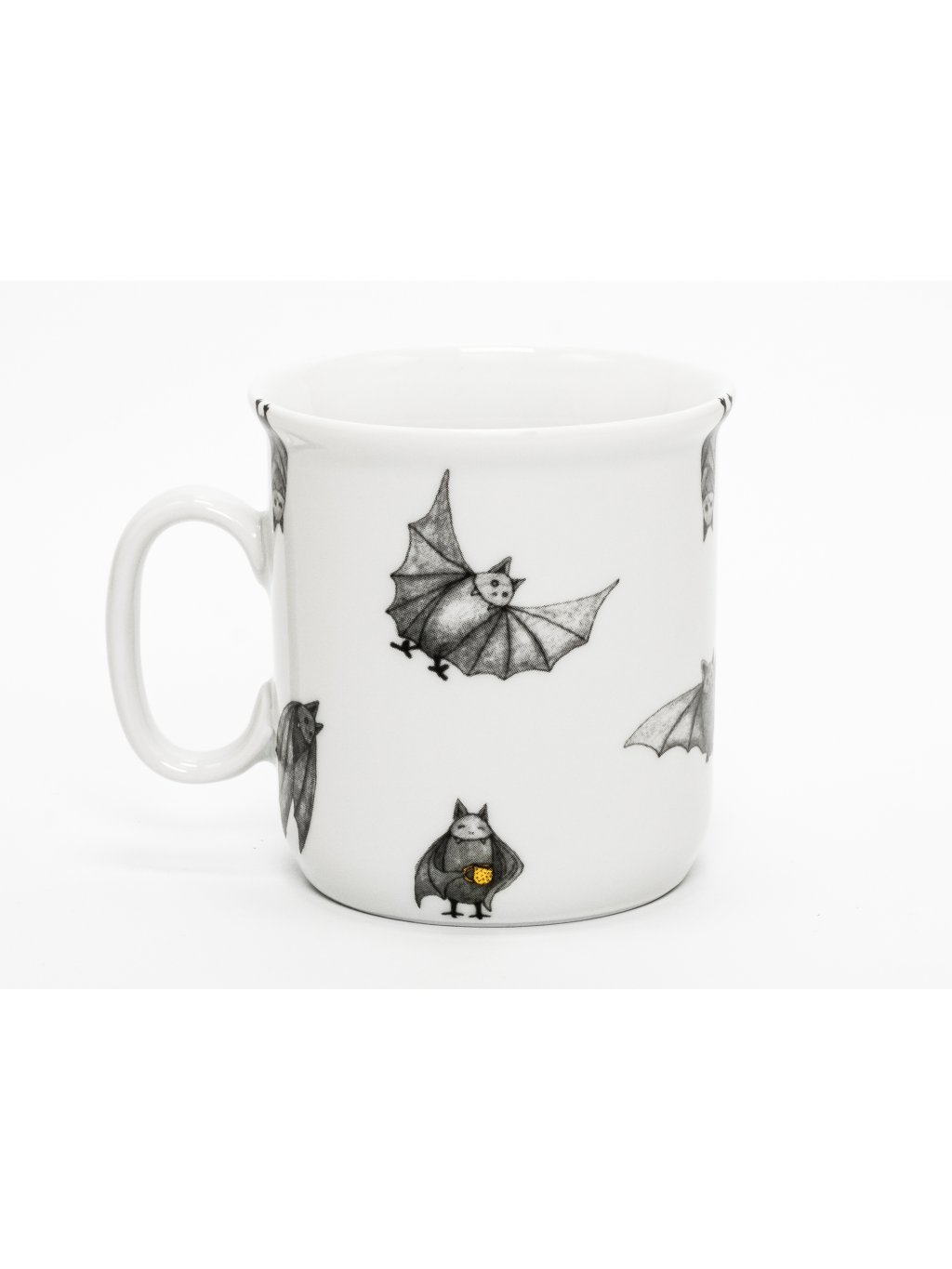 Menší hrnek na teplé mléko, kakao či čaj s dekorem zlého netopýra. Ideální velikost pro děti.