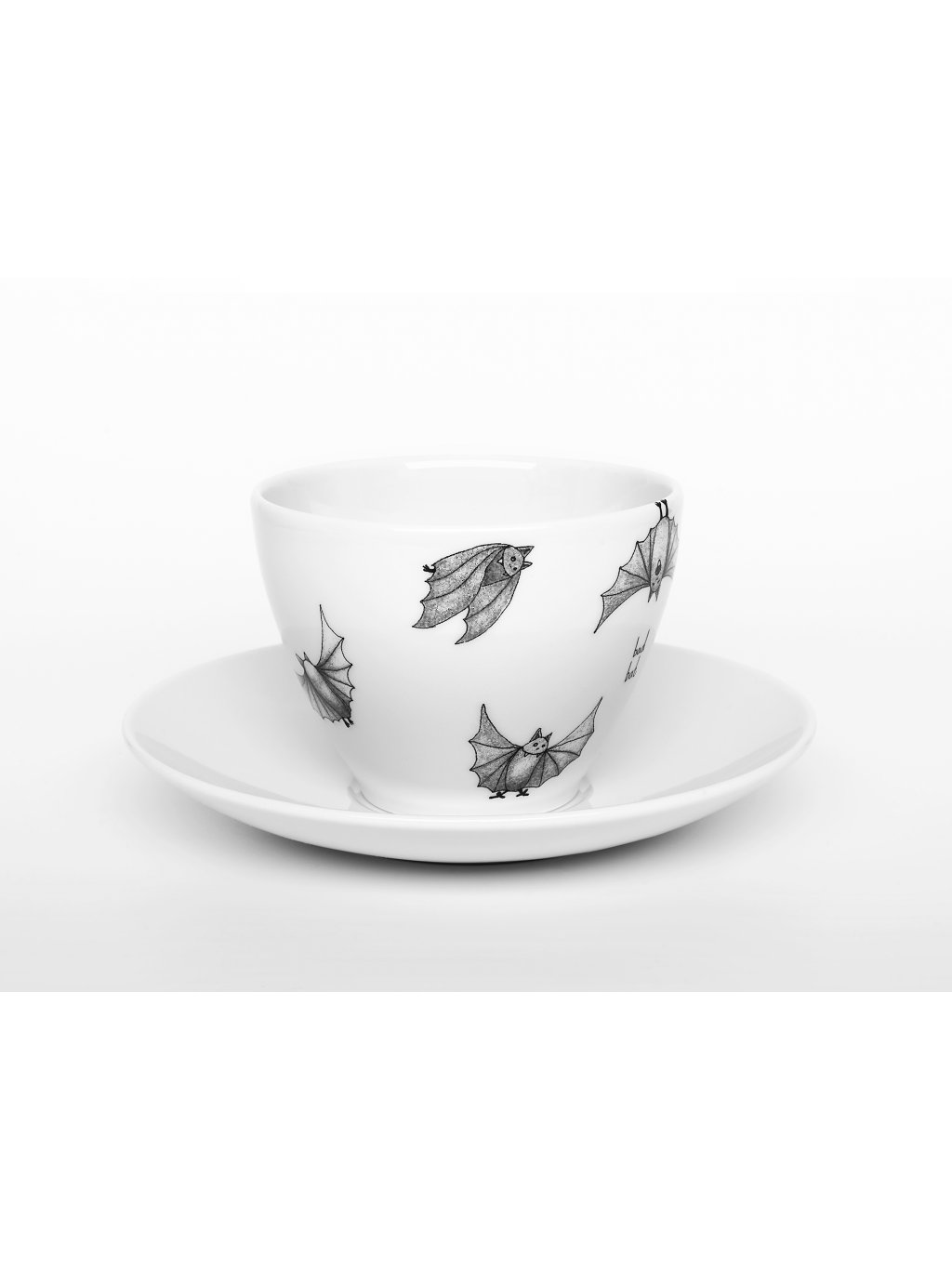 Šálek na čaj či větší kávu s dekorem zlých netopýrů.