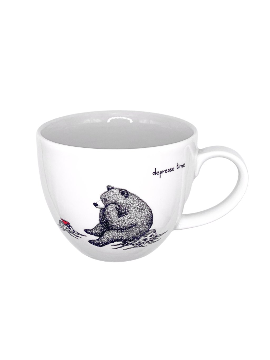 Šálek na kávu či čaj s dekorem depresivního medvěda.