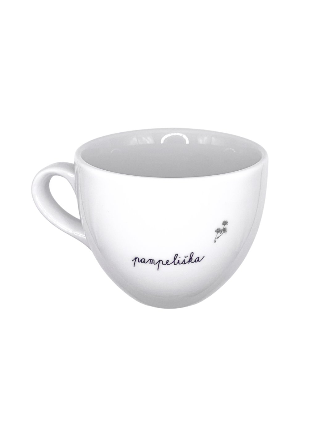 Šálek na větší kávu či čaj s motivem spící pampe-lišky v chmýří.