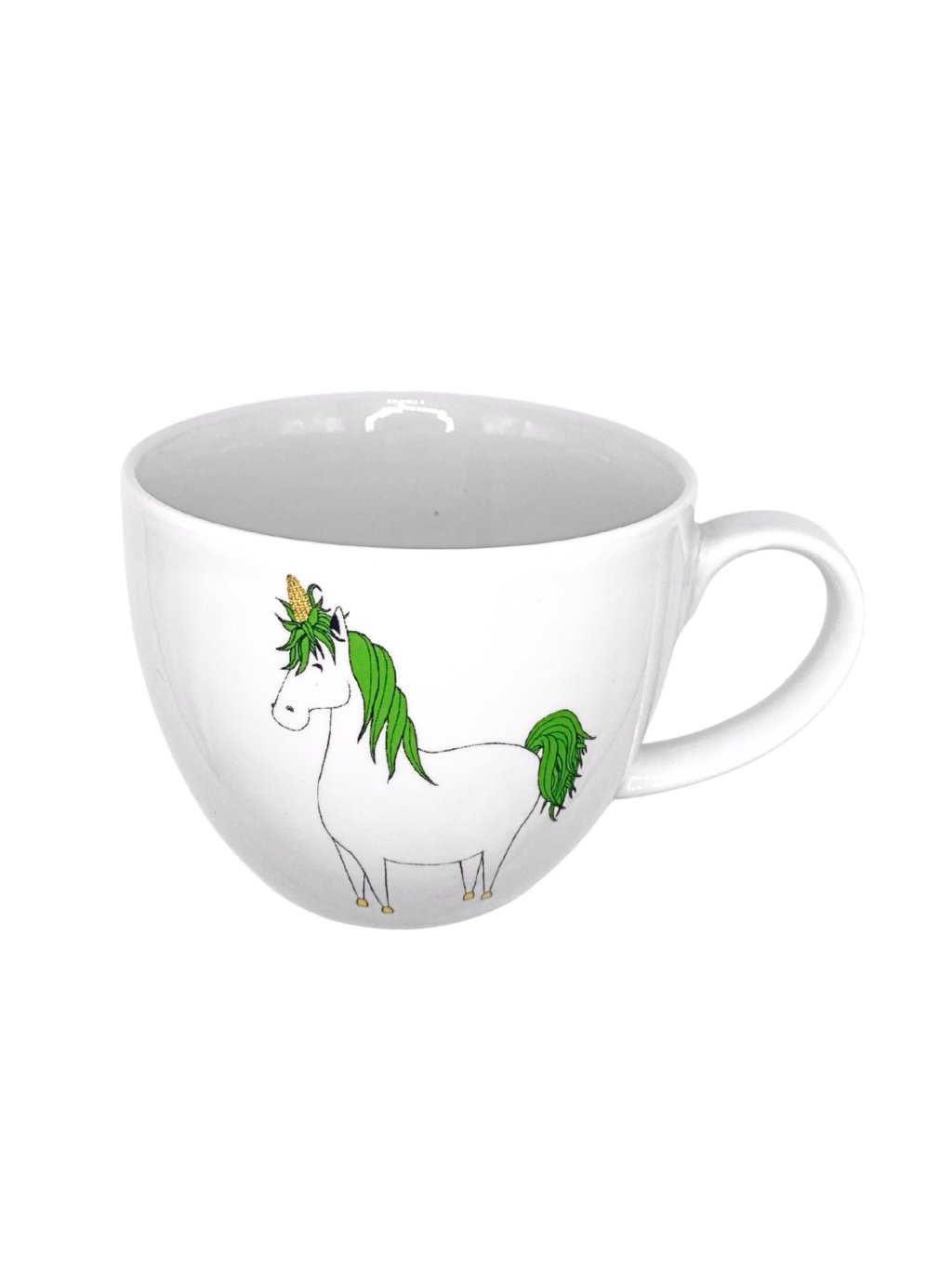 Šálek na čaj či větší kávu s motivem kukuřičného uni-corna.