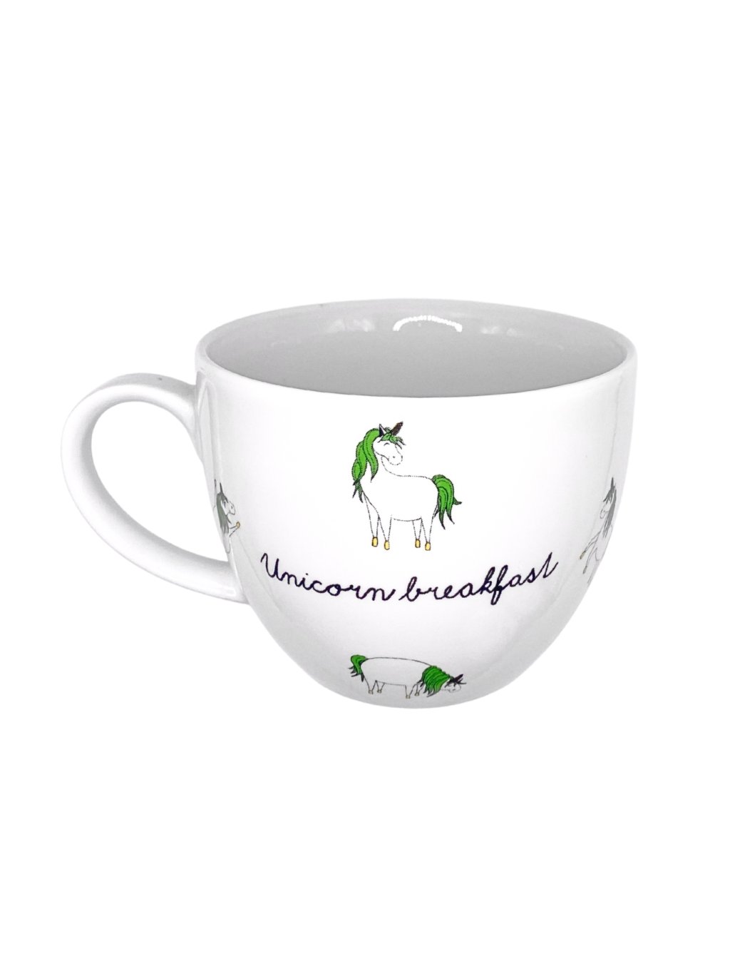 Šálek na čaj či větší kávu s motivem kukuřičných uni-cornů.