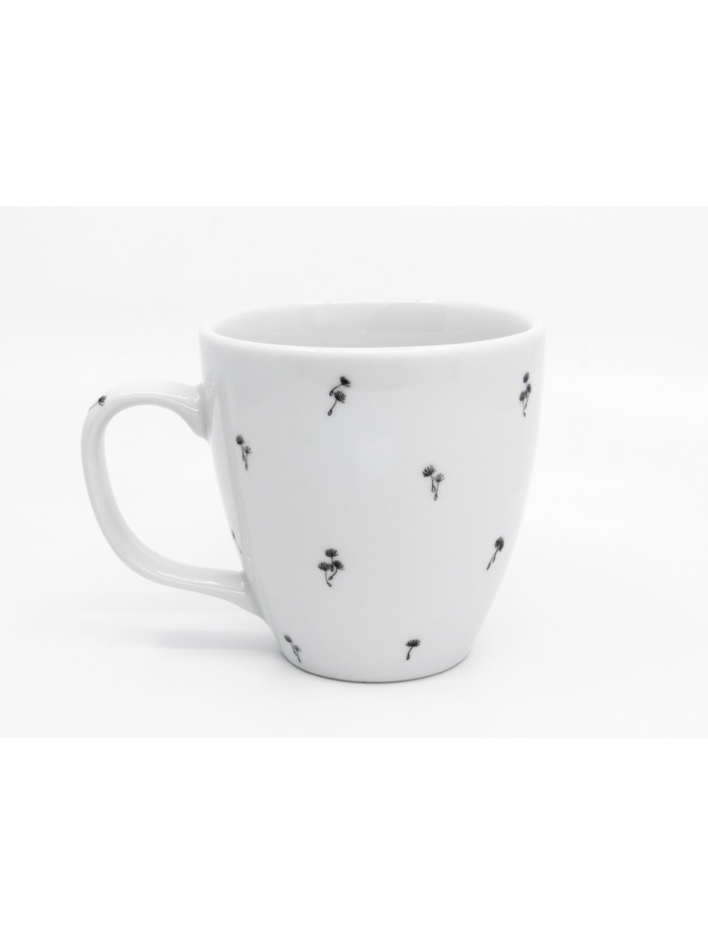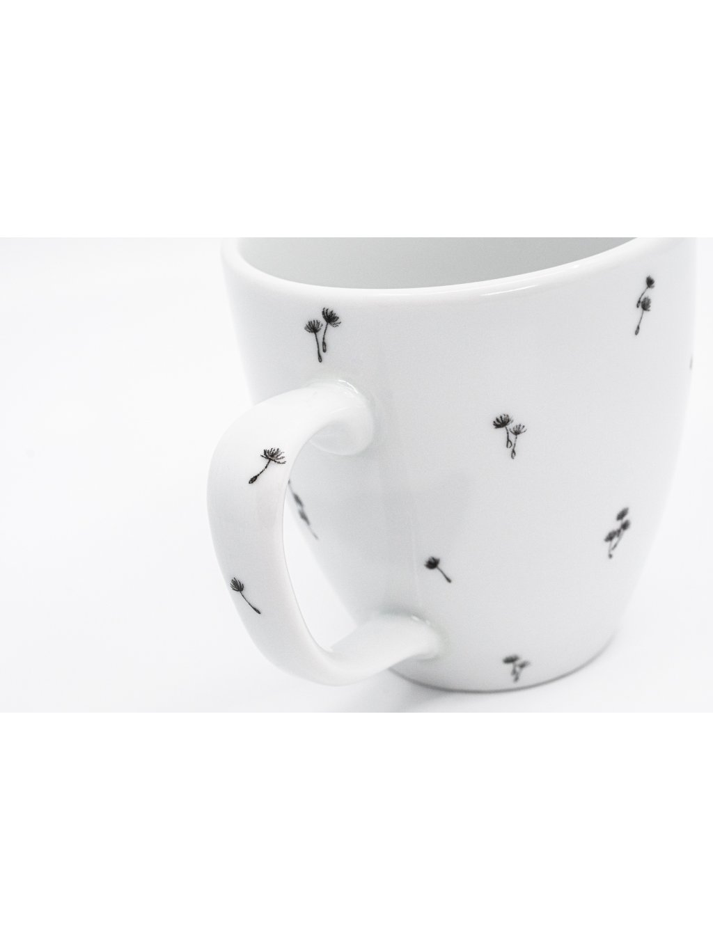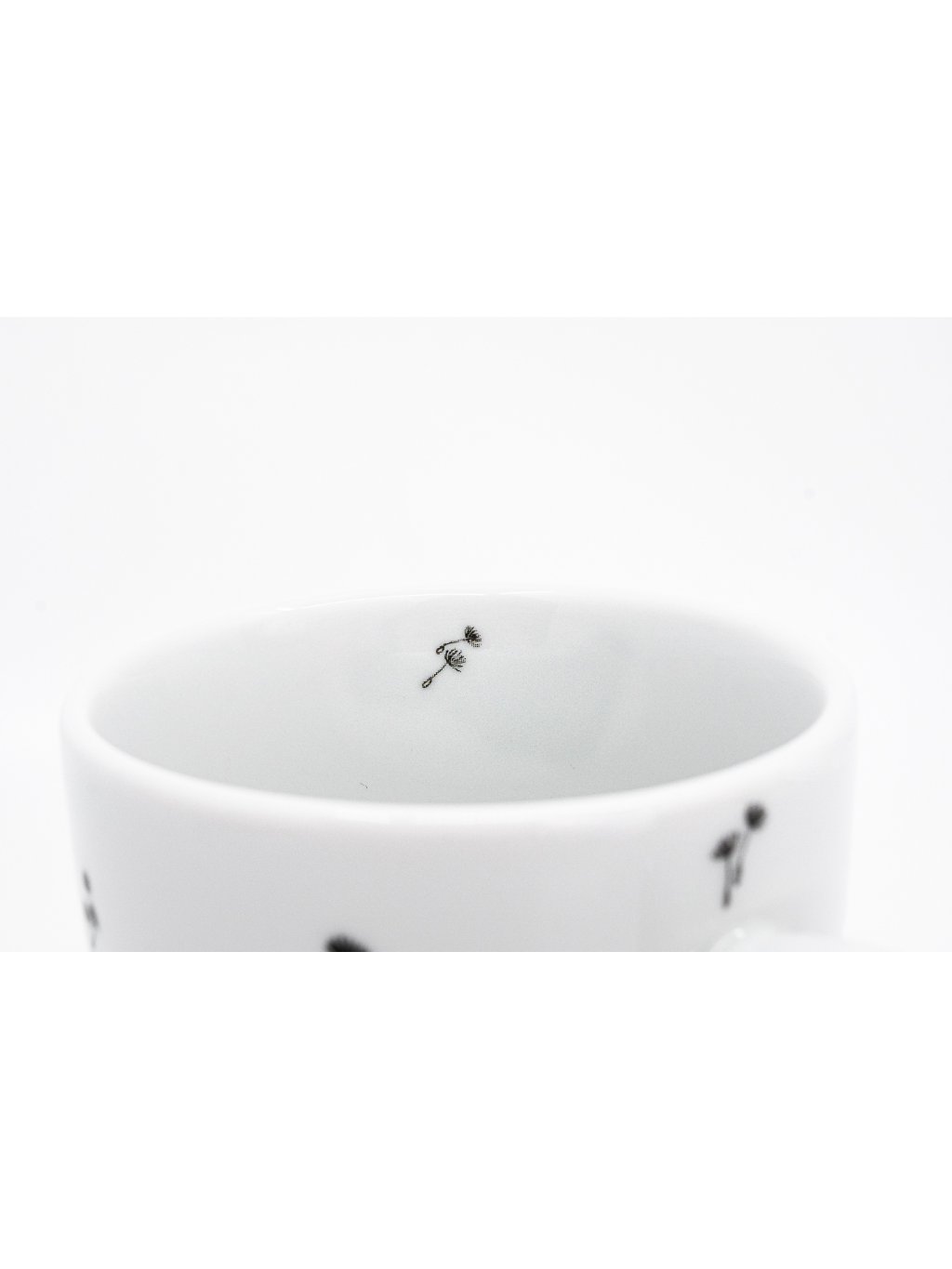 Hrnek na čaj s dekorem pampeliščího chmýří.