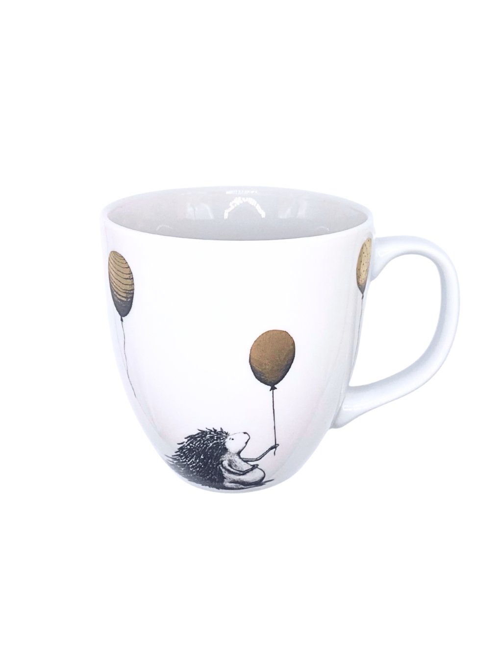 Hrnek na větší kávu nebo čaj s motivem narozeninového dikobraza, který by se měl radši držet dál od narozeninových balónků.