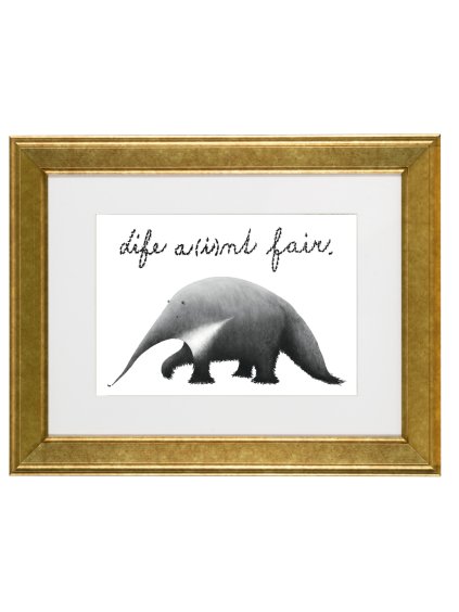 Tisk digitální kresby loudavého mravenečníka a nešťastného mravence s jazykovou hříčkou:"Life a(i)nt fair". Tisková série je limitována 100 kusy. Každý kus je očíslován a...