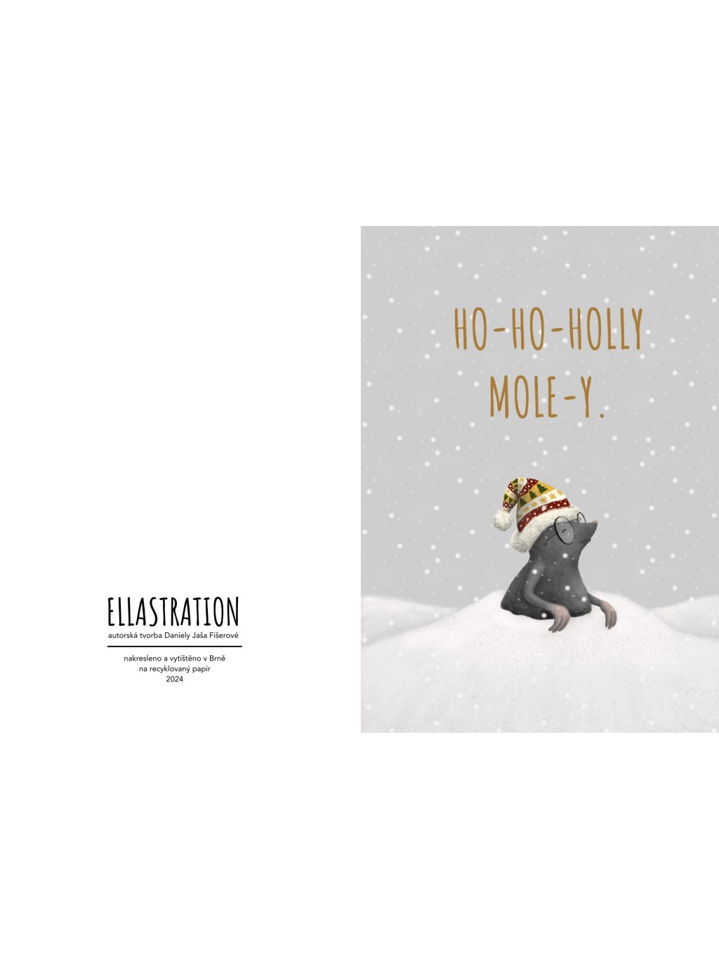 Přání s ilustrací překvapeného krtka, který nerad mluví sprostě, ale to bílý svinstvo ho každoročně nazlobí. Přání uvnitř je bez textu, poskytuje prostor pro Vaše osobní sdělení.